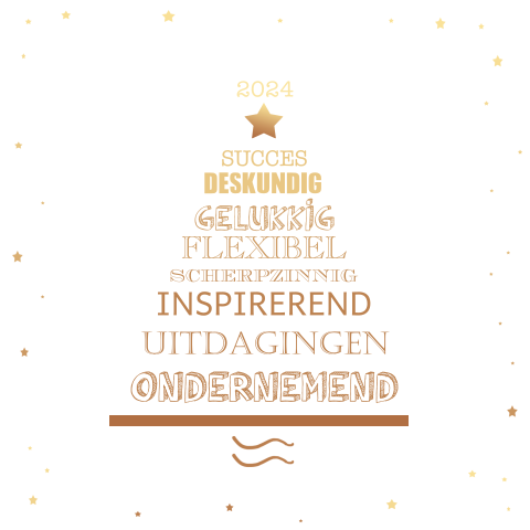 Strakke kerstkaart met gouden tekst in de vorm van een kerstboom